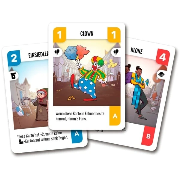 | Inhalt/Ausstattung | 336 Karten, 4 Park-Playmats, 4 Fahnen-Plättchen, 40 Fan-Plättchen, 28 Trophäen-Plättchen, 3 Kartenspender, 2 Anleitungen | ||