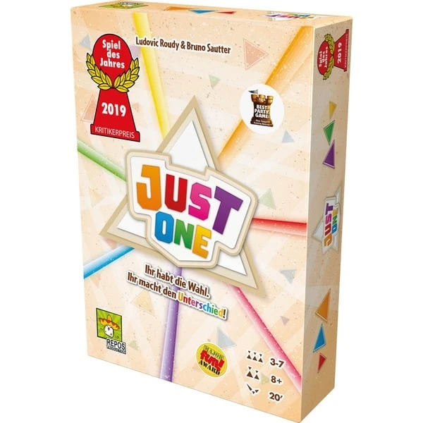 Just One ist ein kooperatives Partyspiel, bei dem alle zusammen gegen das Spiel spielen. Das Ziel ist es, gemeinsam möglichst viele der 13 geheimen Wörter zu erraten. In jeder Runde versucht einer als aktiver Spieler ein geheimes Wort zu erraten. Dabei helfen die anderen Spieler, indem sie verdeckt und ohne sich abzusprechen je einen Hinweis auf ihre Tafeln schreiben. Hier ist Kreativität gefragt, denn derselbe Hinweis darf nicht von zwei Spielern gleichzeitig aufgeschrieben werden. Gibt es zwei oder mehrere identische Hinweise, sind sie ungültig und der aktive Spieler bekommt sie nicht zu sehen. Am Ende der Partie werden alle erratenen geheimen Wörter zusammengezählt und das Spielergebnis ermittelt.Art.-Nr.: 1499157