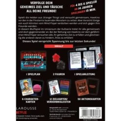 Stranger Things: Rettet Hawkins ist ein Bluffspiel mit geheimen Identitäten, das im Universum der erfolgreichen Netflix-Serie angesiedelt ist. Vier bis sechs Spieler schlüpfen in die Rollen der Serienhelden und arbeiten gemeinsam daran, Hawkins vor dem Angriff des Mind Flayers zu schützen. Allerdings verfolgt jeder auch noch ein geheimes Ziel und versucht seine Freunde daran zu hindern, ihres zu erfüllen. So ist nie wirklich bekannt, wem wirklich vertraut werden kann.Art.-Nr.: 1864080