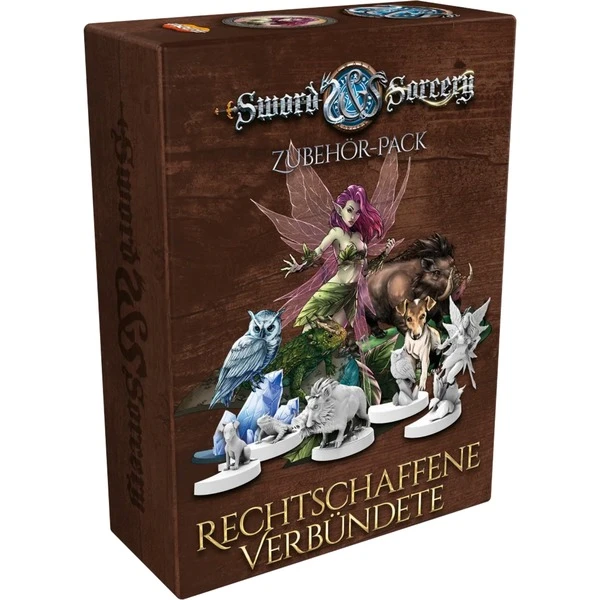 Der Zubehör-Pack Sword & Sorcery – Rechtschaffene Verbündete enthält fünf neue Verbündete für die Helden aus Sword & Sorcecry. Sie werden in drei Kategorien unterteilt: Zahm (Hund), wild (Eber, Krötenechse, Eule) und legendär (Fee). erbündet sich ein Held mit einem dieser Wesen, so steht ihm dieses mit seinen Fähigkeiten im Kampf zur Seite.Art.-Nr.: 1901530