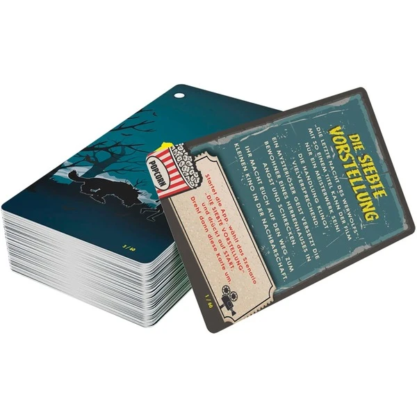 „Die letzte Nacht des Werwolfs“ – mit so einem Titel kann ein Film nur ein Meisterwerk sein! Die Handlung klingt vielversprechend: Ein mysteriöser Geist versetzt die Bewohner in Angst und Schrecken. Die Spieler machen sich auf den Weg zum kleinen Kino in der Nachbarschaft. Sie schnappen sich Popcorn, machen es sich im Kino gemütlich und erleben den neuen Horrorstreifen. Die siebte Vorstellung ist eines der Einzelabenteuer aus der Unlock!-Box Epic Adventures. Die Spiele der Unlock!-Reihe lassen das kooperative Erlebnis eines Escape-Room-Besuchs am heimischen Spieltisch erleben.