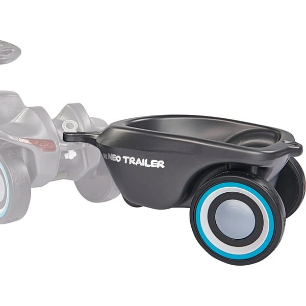 Passend zum BIG-Bobby-Car Neo anthrazit ist auch ein BIG-Bobby-Car Neo Trailer in schickem Design erhältlich. Dieser ist auch mit allen anderen BIG-Bobby-Car kompatibel und lässt sich leicht mit dem enthaltenen Sicherheitskupplungsstift am Rutschfahrzeug befestigen. Der Anhänger verfügt über ein ganz besonderes Gimmick: Es sind Felgenringe in 2 verschiedenen Farben beigelegt: Türkis und Pink. So kann der Trailer ganz nach Geschmack immer wieder umgestaltet werden. Im Inneren des robusten Anhängers ist viel Platz für alle wichtigen Utensilien der kleinen Fahrerinnen und Fahrer. Abgerundete Ecken und Kanten sorgen für ein sicheres Spielvergnügen. Der BIG-Bobby-Car Neo Trailer anthrazit wird serienmäßig mit extra breiten, hochwertigen und abriebfesten Weichkunststoff-Reifen geliefert, die für guten Grip sorgen und flüsterleise rollen. Des Weiteren verfügt der Trailer über 3-teilige geschlossene Felgen, die besonders leicht zu reinigen sind.Art.-Nr.: 1623770