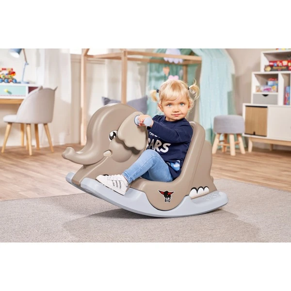 | Inhalt/Ausstattung | Schaukel-Elefant mit rutschfester und breiter Fußauflage, ergonomischen Griffen, beweglichen Ohren | ||