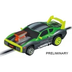 Volle Power mit den Muscle Cars! Im Carrera GO!!! Set „Heads-Up Racing“ steckt purer Fahrspaß und Power. Das Muscle Car in leuchtendem Grün und sein Konkurrent im stylischen Flammendesign liefern sich auf der 4,9 Meter langen Rennstrecke ein packendes Duell – dank Lichteffekten sogar auch im Dunkeln! Austauschbare Elemente sorgen für individualisierten Rennspaß. Motorhaube und Heckspoiler der beiden Fahrzeuge können untereinander ausgetauscht werden und liefern so noch mehr optische Gestaltungsmöglichkeiten im heißen Duell. Actionelemente wie Looping und Engstelle fordern dein vollstes Fahrgeschick am Handregler mit Turbo-Button – Spannung pur bis zur Ziellinie!Art.-Nr.: 1873396