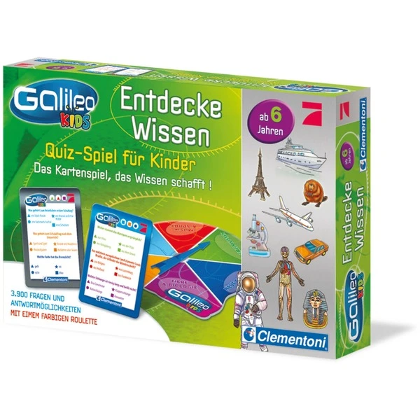 Ein Quiz-Spiel mit 780 Fragen und mehr als 3000 Antwort- Vorschlägen für Kinder ab 6 Jahren. Sie versuchen die Fragen durch Auswahl eines der Antwort-Vorschläge zu beantworten und überprüfen die Richtigkeit mithilfe eines einfachen Selbstkorrektursystems, bei dem jeder Antwort-Option ein Symbol und eine Farbe zugeordnet ist. Allein oder zusammen mit ihren Freunden können die Kinder zahlreiche interessante Themen aus den Bereichen Geschichte, Geographie, Biologie, Tierwelt, Technik, Musik, Sport und allgemeine Kultur vertiefen und sich mit fesselnden Fragen auf die Probe stellen!Art.-Nr.: 1742289