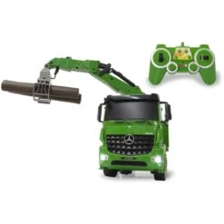 Der Jamara Holztransporter Mercedes Benz Arocs ist ein RC-LKW mit drehbarem Kran im Maßstab 1:20. Er ist sowohl für den Indoor-, als auch den Outdoor-Einsatz geeignet. Er bietet jede Menge Action und Fahrspaß mit realistischem Motorsound. Ein Highlight stellt der um 180° drehbare Kran dar. Er lässt sich im und gegen den Uhrzeigersinn drehen. Der an ihm wahlweise befestigte Lasthaken oder Greifarm lässt sich mithilfe der Fernsteuerung heben und senken. Die Bordwände sind zudem manuell aufklappbar. Weiterhin ist der Mercedes Arocs mit einer LED-Beleuchtung ausgestattet.Art.-Nr.: 1683626