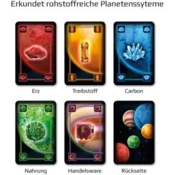 CATAN im Weltraum für noch mehr Abenteuer! Im Brettspiel „CATAN – Sternenfahrer“ von KOSMOS begeben sich 3–4 Spieler auf Entdeckungsreise ins Weltall. Die Reise bringt sie in Raumschiffen von ihrer Heimat zu neuen Planeten. Dort erkunden sie rohstoffreiche Planetensysteme und unbekannte Handelsstationen. Die Raumschiffe der Spieler lassen sich mit zusätzlichen Antrieben und Laserkanonen ausstatten, so dass die Spieler ihre Raumschiffe schneller fortbewegen und sich gegen Raumpiraten verteidigen können. Das Original „Die Sternenfahrer von CATAN“ aus dem Jahre 1999 erscheint hiermit in einer überarbeiteten Version mit neuen Spielfiguren, Illustrationen, Grafiken sowie einem variablen Spielplan.Art.-Nr.: 1560518