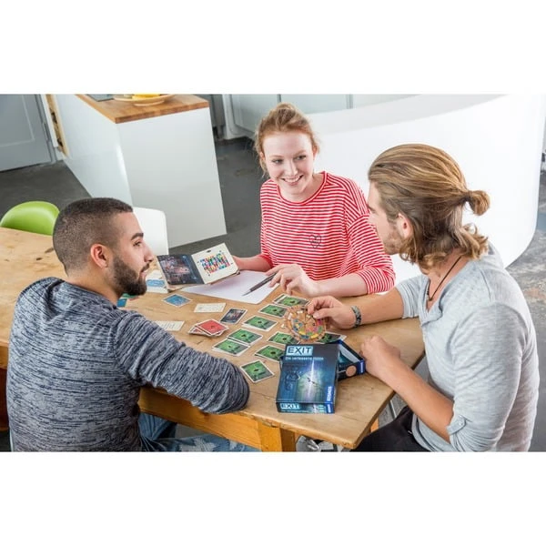 Eigentlich sollte die Hütte nur als Unterschlupf für eine Nacht dienen. Aber am Morgen ist die Tür plötzlich mit einem Zahlenschloss gesichert. Die Kombination der Zahlen ist den Spielern unbekannt. Die Fenster sind vergittert. Eine rätselhafte Drehscheibe und ein geheimnisvolles Buch scheinen ein erster Hinweis zu sein. Schaffen es die Spieler damit aus der Hütte zu flüchten? Bei „EXIT – Das Spiel“ entdecken die Spieler mit etwas Kombinationsgabe, Teamgeist und Kreativität nach und nach immer mehr Gegenstände, knacken Codes, lösen Rätsel und kommen der Freiheit Stück für Stück näher. Dabei müssen auch ungewöhnliche Wege beschritten werden. So darf das Material geknickt, beschriftet oder zerrissen werden. Ist das Geheimnis des Raumes einmal gelüftet, kann das Event-Spiel kein zweites Mal gespielt werden. Das macht den Spieleabend zu einem besonderen Highlight. Live-Escape-Feeling im Fortgeschrittenen-Level. Für 1 – 4 Spieler ab 12 Jahren. Der atmosphärische Nervenkitzel für zu Hause.Art.-Nr.: 1303580