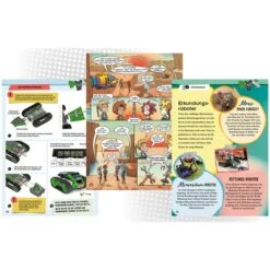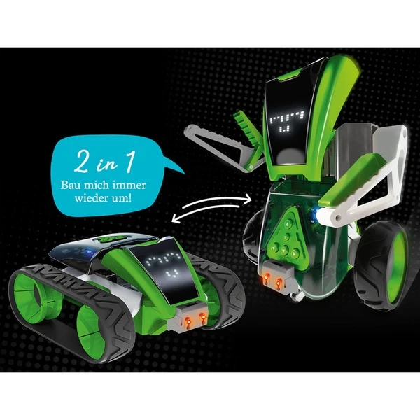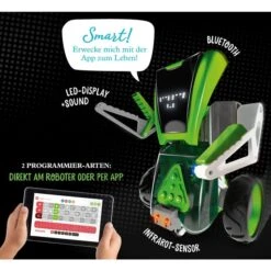 Programmieren mit App und 2 in 1 Roboter-Bausatz! Teil für Teil bauen Kinder von 8 bis 12 Jahren Mazzy zusammen und setzen die Platinen und LED-Display ein. Fertig? Mazzy wartet auf Befehle! Durch die intuitive App mit einfacher grafischer Darstellung wird ausgetestet, was er alles drauf hat: Soll der Roboter vorwärtsfahren, sich drehen, tanzen oder singen? Eine eingebaute Timeline lässt Mazzy die Befehle entweder gleichzeitig oder hintereinander ausführen und führt dadurch tiefer in das Programmieren ein. Aus dem humanoiden Roboter wird ein extra geländegängiger Rover mit Raupenantrieb. Ob per App oder Tastenfeld am Roboter: Wer steuert Mazzy aus dem Labyrinth heraus? Die Anleitung hilft mit einer Schritt-für-Schritt-Bebilderung beim Aufbau und macht Mazzy zum Star in seinem eigenen Comic. Ein KOSMOS Experimentierkasten für Robotik-Fans.Art.-Nr.: 1732717