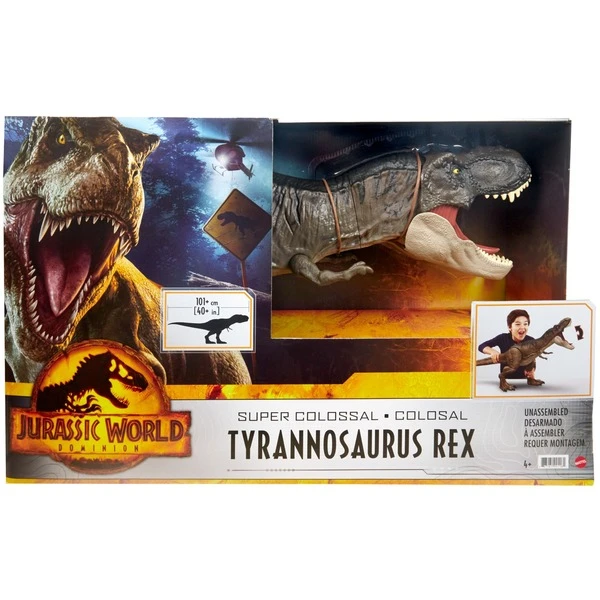 Der Jurassic World Riesendino Tyrannosaurus-Rex ist wirklich gigantisch: Dieser Spielsaurier mit beweglichen Gelenken an Armen und Beinen kommt auf eine Länge von etwa 90 Zentimeter. Realistisches Aussehen und Form kombiniert dieser Gigant mit einer beeindruckenden Funktion: Mit seinem Riesenmaul ist er in der Lage, bis zu 20 Mini-Dinosaurier (separat erhältlich) zu verschlucken. Danach können die verschluckten Dinosaurier durch Entriegelung der Klappe am Bauch dieses Giganten wieder frei gelassen und erneut verschlungen werden.Art.-Nr.: 1807633