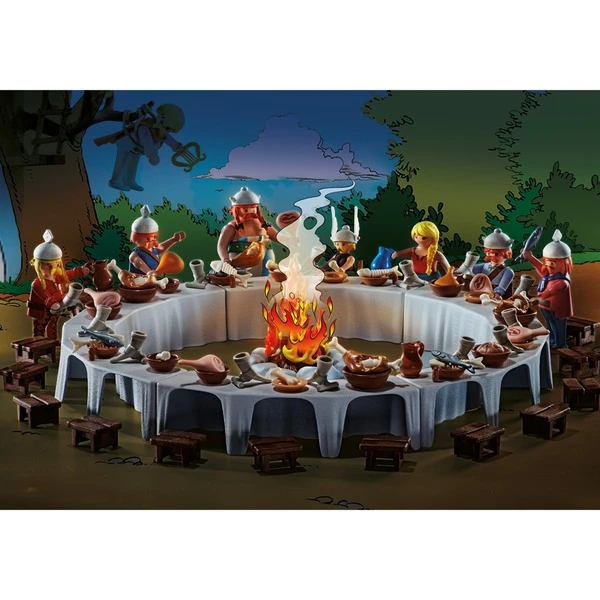 | Inhalt/Ausstattung | Asterix, Obelix, 4 Gallier, 1 Gallierin, Idefix, 1 Wildschwein, 1 Kuh, 2 Eichhörnchen, 1 Eule, 1 Vogel, 4 Fische, Asterix Hütte, 4 Palisaden, 1 Tor, 1 Zaunelement, 1 Wagen, 6 Tische, 1 Feuerstelle, 1 Feuerstelle mit Drehspieß, 1 Hinkelstein, 18 Hocker, 18 Trinkbecher, 1 Schemel, 1 Bett, 1Kissen, 1 Holztisch, 1 Kochstelle, 1 Pfannen-Set, 1 Besen, 1 Bank, 3 Römer-Helme, 1 Hackblock, 1 Axt, 4 Tonkrüge, 1 Trage, 5 Holzscheite, 1 Topf, 2 Strohballen, 2 Stroh-gebunden, 4 Fischgräten, 7 Knochen, 6 Schinken, 2 Wildschweinbraten, 1 Brot, 1 Bierschänke, 1 Vase, 5 Fleisch mit Knochen, 4 Teller mit Griff, 4 Teller, 4 große Schüsseln, 4 mittlere Schüsseln, 4 kleine Schüsseln, 1 Standplatte,1 Korb, 2 Blumensträuße, 4 Rosen, 1 Blumenbusch, 2 Bäume, 1 Asterix Helm mit Flügeln, 1 Trinkflasche, 1 Dolch, 2 Gürtel, 2 Helme mit Hörnern, 3 Gallier-Helme, 2 Schleifen, 4 Manschetten, 1 Gürtelöse, 2 Schwerter | ||