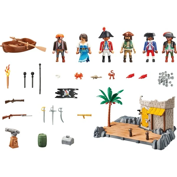 Mit den neuartigen My Figures von PLAYMOBIL können Kinder jetzt eine PLAYMOBIL-Welt ganz nach ihren Vorstellungen erschaffen, ihre Kreativität entfalten und dabei ihre individuelle Persönlichkeit entwickeln. Jedes My Figures Spielset enthält neben einer Spielszenerie mit Accessoires eine Tüte mit sechs Figuren in Einzelteilen, welche immer wieder neu zusammengestellt werden können. Arme, Beine, Körper und Accessoires sind im Nu getauscht und ergeben Spielfiguren, die so bunt sind wie das Leben. Durch die vielseitigen Kombinationsmöglichkeiten mit über 1000 Figurenkonstellationen fördern PLAYMOBIL My Figures ganz spielerisch Kreativität, Feinmotorik, Entdeckergeist und Persönlichkeitsentwicklung. Mit My Figures können Kinder ihre Spielwelt so gestalten, wie sie sie sehen und erleben, unabhängig von Stereotypen und Hautfarben. Mit dem My Figures Set Island of the Pirates ist aufregender Spielspaß rund um die PLAYMOBIL-Freibeuter vorprogrammiert. Die Rotröcke haben nicht vor, ihre Bastion kampflos aufzugeben, doch die grimmigen Piraten verfolgen ganz eigene Pläne. Wer wird sich wohl am Ende durchsetzen? Auf geht’s ins spannende Piratenabenteuer.Art.-Nr.: 1864491