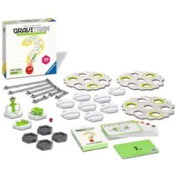 GraviTrax The Game Impact bringt kreativen Rätselspaß: Diese Lernspiel für Kinder ab 8 besteht aus 30 Rätseln, die mit der Hilfe von Aufgabenkarten gelöst werden müssen. Zunächst wird dabei die Position von Start und Ziel angegeben. Nun muss die Kugelbahn möglichst optimal aufgebaut werden, wobei vorgegeben ist, welche Elemente verwendet werden können. Dabei steht in dieser Variante der Action-Hammer im Mittelpunkt und sorgt zusammen mit weiteren 27 Bausteinen für Knobelspaß. Dieses Spiel ist Teil der GraviTrax-Welt von Ravensburger und enthält aus den Kugelbahnen bekannten Teile. Art.-Nr.: 1828824