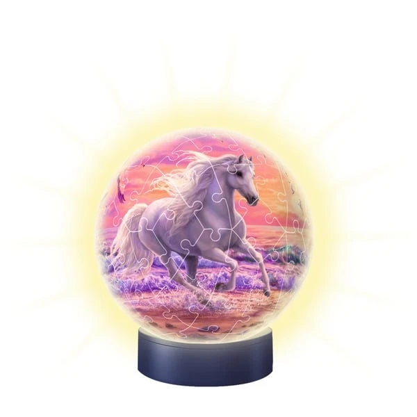 Pferdeliebhaber aufgepasst! Dieser 3D Puzzle-Ball wird mit einem Händeklatschen zum romantischen Nachtlicht, wenn der Leuchtsockel den Ball von innen erstrahlen lässt. Dank unserer Easyclick Technology passen alle Kunststoff-Puzzleteile perfekt ineinander und formen eine stabile Kugel, ganz ohne Kleben. Die Nummerierung der Teile erleichtert das Vorsortieren und ermöglicht einfaches Puzzeln nach Zahlen.Art.-Nr.: 1452105