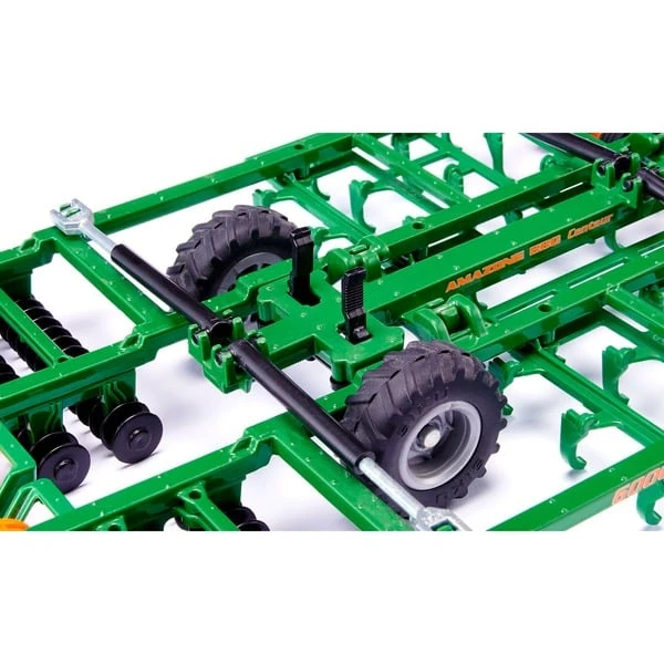 Der Amazone Centaur ist ein Arbeitsgerät für Großtraktoren und ist zur Arbeit in größeren landwirtschaftlichen Betrieben eigentlich unverzichtbar. Diese multifunktionale Bodenbearbeitungsmaschine ist perfekt für alle Einsatzfälle und meistert selbst schwierigste Herausforderungen scheinbar mühelos: Von Stoppelbearbeitung und Grundbodenbearbeitung über krumentiefe Lockerung bis hin zur Saatbettbereitung. Der Rahmen der robusten Modell-Maschine ist aus Metall, Grubberzinken und Scheibeneggen-Elemente hingegen aus Kunststoff. Die Reifen sind aus gummiertem Material mit landwirtschaftlichem Profil und bieten auch in tiefem und schwerem Boden perfekten Halt. Für ein noch realistischeres Spielerlebnis lassen sich die Packerwalzen an Front und Heck drehen, zudem lässt sich der Rahmen klappen und in der Transportposition feststellen. Diese imposante Maschine kommt in der Original Amazone-Lackierung in Grün mit orangenen Kunststoffdetails.Art.-Nr.: 1902530