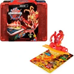 In der Baku-Tin Aufbewahrungsbox lässt sich eine Bakugan-Sammlung bestens verstauen und leicht mitnehmen. Diese hochwertige Metallbox mit coolen Bakugan-Illustrationen enthält einen Special Attack Mantid Bakugan mit Charakter-, Special Attack- und Portalkarten. Auf zwei Ebenen gibt es hier genügend Platz für Bakugan, Sammelkarten und Special Attack Power-Ringe. Auf dem geöffneten Deckel entsteht eine Spielfläche für Battles unterwegs. Mithilfe der XL-Reißleine rollen die Bakugan blitzschnell. Mit einem Code für die Online-Gamingplattform Roblox stehen weitere Spiel- und Interaktionsmöglichkeiten bereit. In Kombination mit der Battle Arena und den Training Packs (jeweils separat erhältlich) werden Strategie und Spielspaß immer wieder neu kombiniert.Art.-Nr.: 100008499