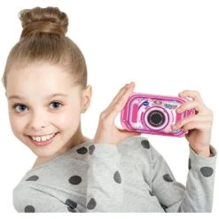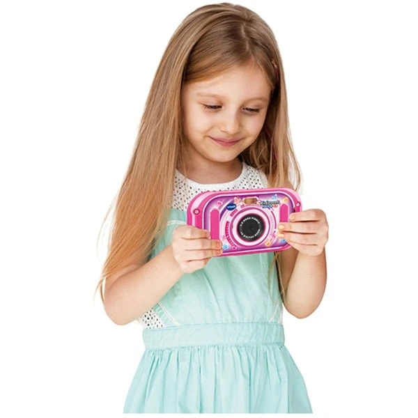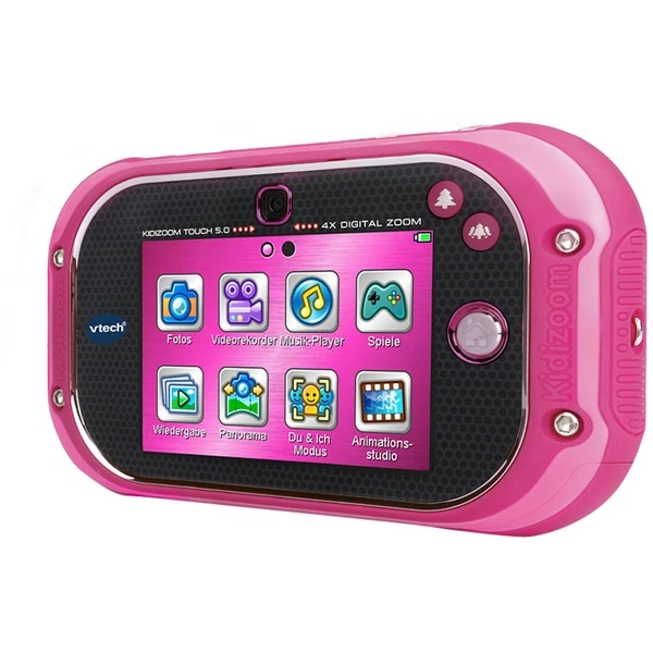 Die VTech KidiZoom Touch 5.0 ist eine stylische Digitalkamera für Kinder mit einem 8,9 cm großen Touch-Farbdisplay, integriertem Musik-Player, Film-Funktion, Bildbearbeitung, Spielen und mehr. Das robuste Gehäuse schützt die Kamera und sorgt für einen guten Halt in kleinen Händen. Die zusätzliche Kameralinse auf der Rückseite ermöglicht die Aufnahme von tollen Selbstporträts. Über das Touchdisplay können die kleinen Künstler ihre Bilder gleich mit dem Finger verändern und bemalen. Im Animationsstudio können aus einzelnen Fotos lustige Filme erstellt werden. Damit auch längere Shootings bewältigt werden können, ist der Speicher mit einer optional erhältlichen microSD-Karte erweiterbar. Die zahlreichen vorinstallierten Fotoeffekte und Spiele können mit weiteren spannenden Inhalten aus dem VTech Download Manager erweitert werden.Art.-Nr.: 1442322